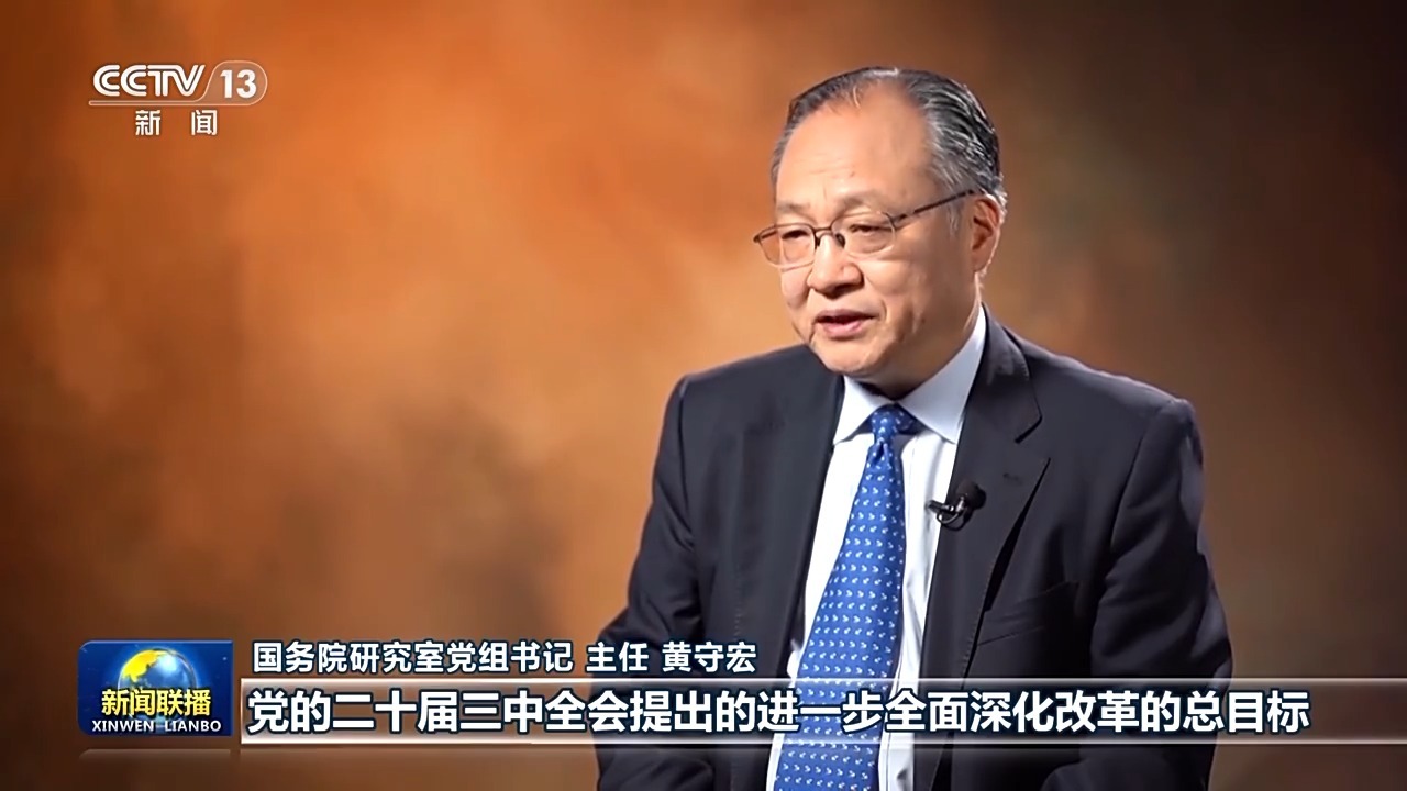 党的二十届三中全会提出进一步全面深化改革的总目标:继续完善和发展中国特色社会主义制度,推进国家治理体系和治理能力现代化。如何把握这一总目标? 今天的《权威访谈》,来看记者对国务院研究室主任黄守宏的专访。