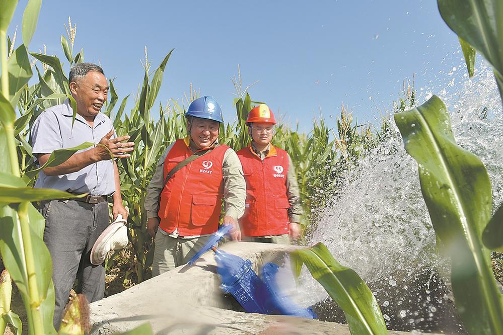 8月12日,在老河口市张集镇罗营村,国网老河口市供电公司员工对农田灌溉用电线路进行检查,保障高温天气下农业灌溉可靠用电,助力村民增产增收。