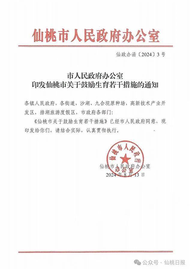 湖北日报讯(记者雷巍巍)8月13日,仙桃市政府出台《仙桃市关于鼓励生育若干措施》(以下简称《措施》),涉及生育奖励、住房保障、托育补贴、税收政策等7个方面。