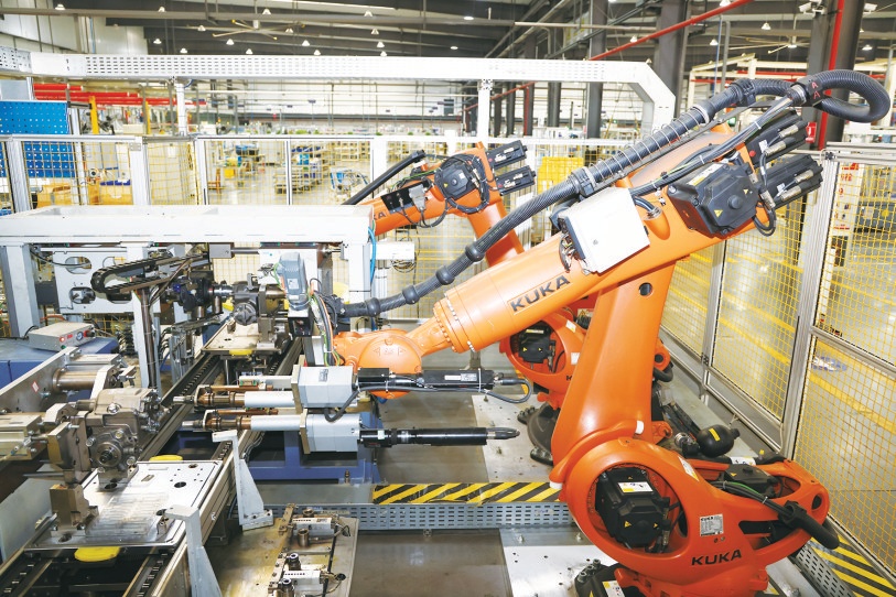 东科克诺尔商用车制动有限公司智能化机器人正在加工产品。