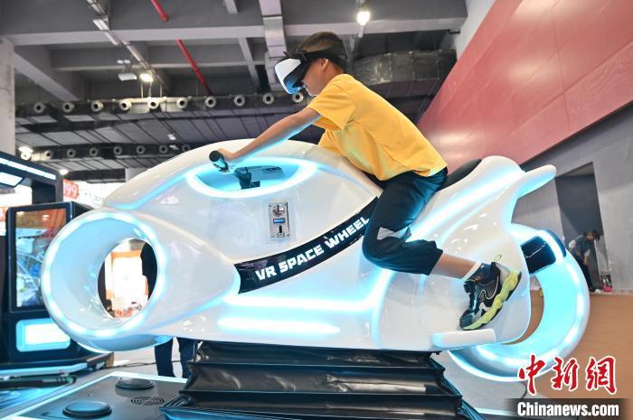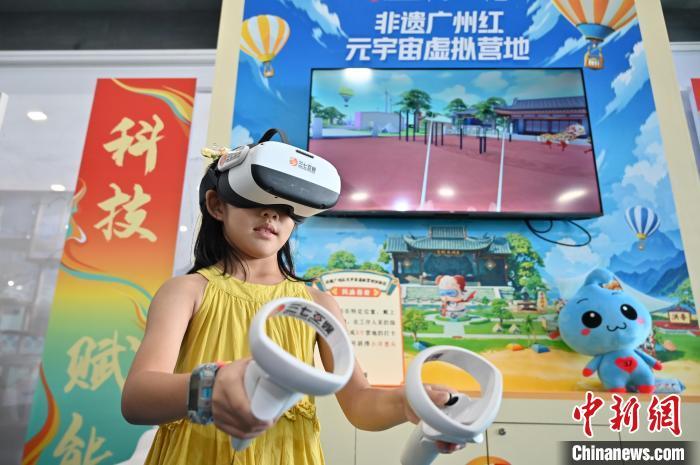8月16日,广东广州,“2024南国书香节暨羊城书展”开幕。本届南国书香节主会场设于中国进出口商品交易会展馆B区,共有70多家优秀出版机构参展,展销各类出版物、文创产品30余万种,还设立521个分会场,举办2000多场重点活动。图为VR游戏吸引小朋友体验。中新社记者 陈楚红 摄