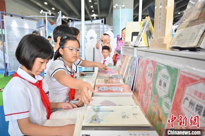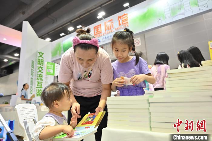 8月16日,广东广州,“2024南国书香节暨羊城书展”开幕。本届南国书香节主会场设于中国进出口商品交易会展馆B区,共有70多家优秀出版机构参展,展销各类出版物、文创产品30余万种,还设立521个分会场,举办2000多场重点活动。图为羊城书展的书籍吸引小朋友阅读。中新社记者 陈楚红 摄