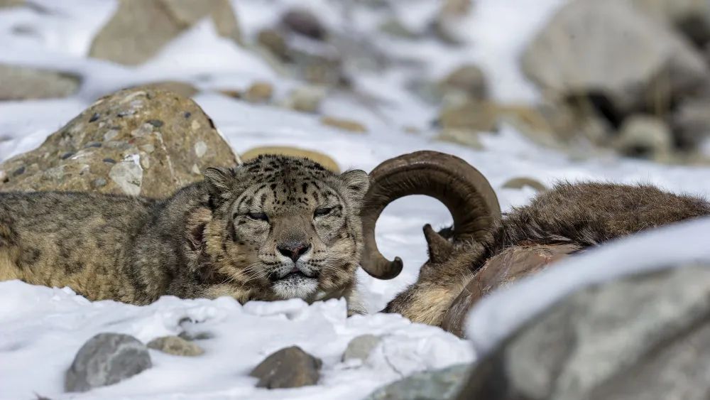 红外相机拍摄到的贺兰山雪豹“F1”捕食画面