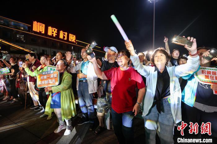 8月16日。游客在桐梓“村晚”现场舞动。 中新社记者 瞿宏伦 摄