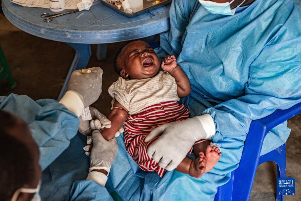 8月15日,在刚果(金)北基伍省首府戈马市附近尼拉贡戈地区的一座医院里,医务人员对感染猴痘病毒的儿童进行治疗。