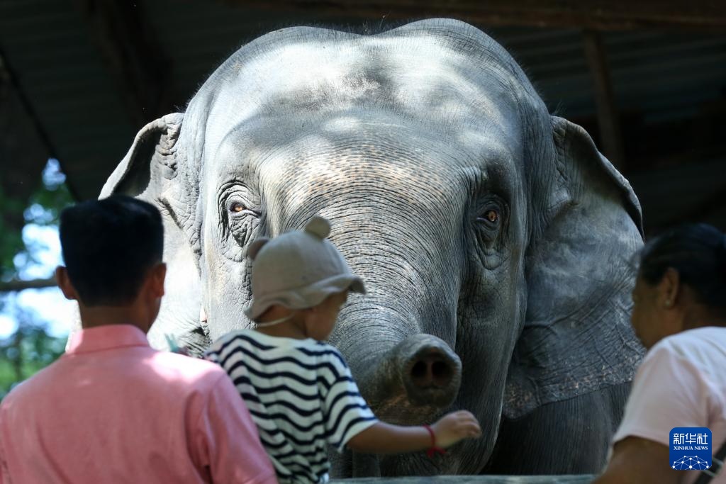 8月11日,人们在缅甸仰光动物园参观亚洲象。