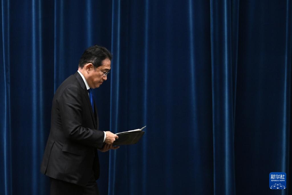 8月14日,日本首相岸田文雄出席在东京首相官邸举行的记者会。