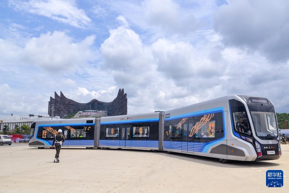 这是8月12日在印度尼西亚新首都努山塔拉拍摄的智轨系统。