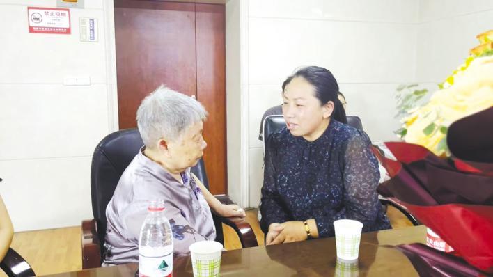 李红建(右)与妈妈亲热交谈。