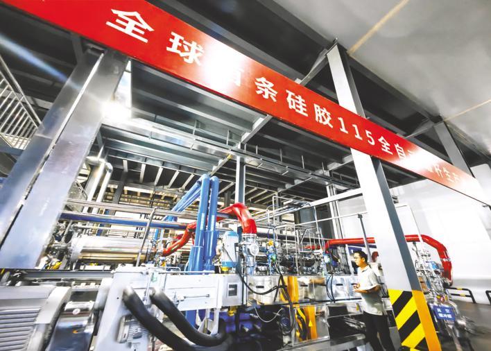2022年以来,新能源电池进入视野。“近几年,新能源电池爆发式增长,为有机硅树脂提供了广阔空间。”廖想程说,公司迅速调整产品结构,积极开拓客户,将一半产能转向有机硅树脂,并凭借过硬的质量,受到客户青睐。在二期项目中,计划安装一条有机硅树脂生产线。投产后,其产能将从现在的5000吨扩大到1万吨,实现翻番。