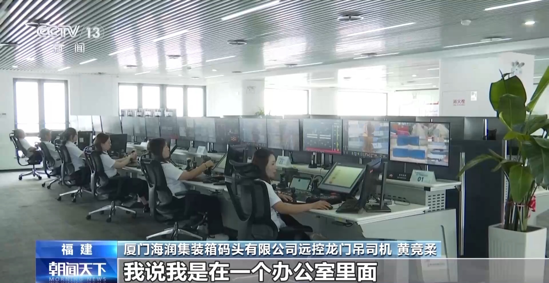 厦门海润集装箱码头有限公司远控龙门吊司机 黄竞柔:我跟身边朋友提起的时候,我说我是我是在一个办公室里面远程操控龙门吊的,他们第一反应是觉得我好厉害。