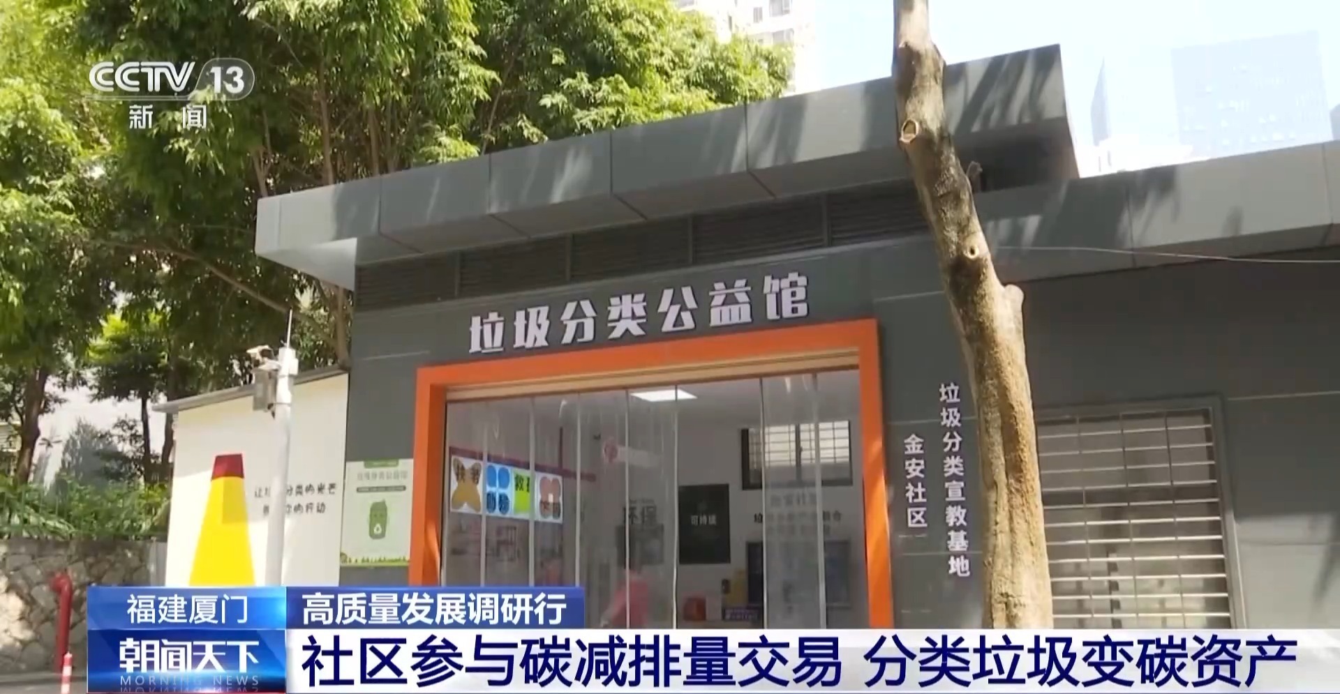 金安社区是厦门市岛内最大的社会保障性住房社区,居民高达2.4万人,社区书记陈惠萍告诉我们,这碳减排交易的故事,得从2017年讲起。那年开始,厦门市围绕着“垃圾去哪儿”展开全市行动:全面推广生活垃圾分类,从源头抓起,把普通垃圾桶换成智能垃圾屋;中间环节,分类运输车配备齐全,不让垃圾“混搭”运输;最后,还得让处理垃圾的能力跟上,确保垃圾收得走,还能“消化”得了。