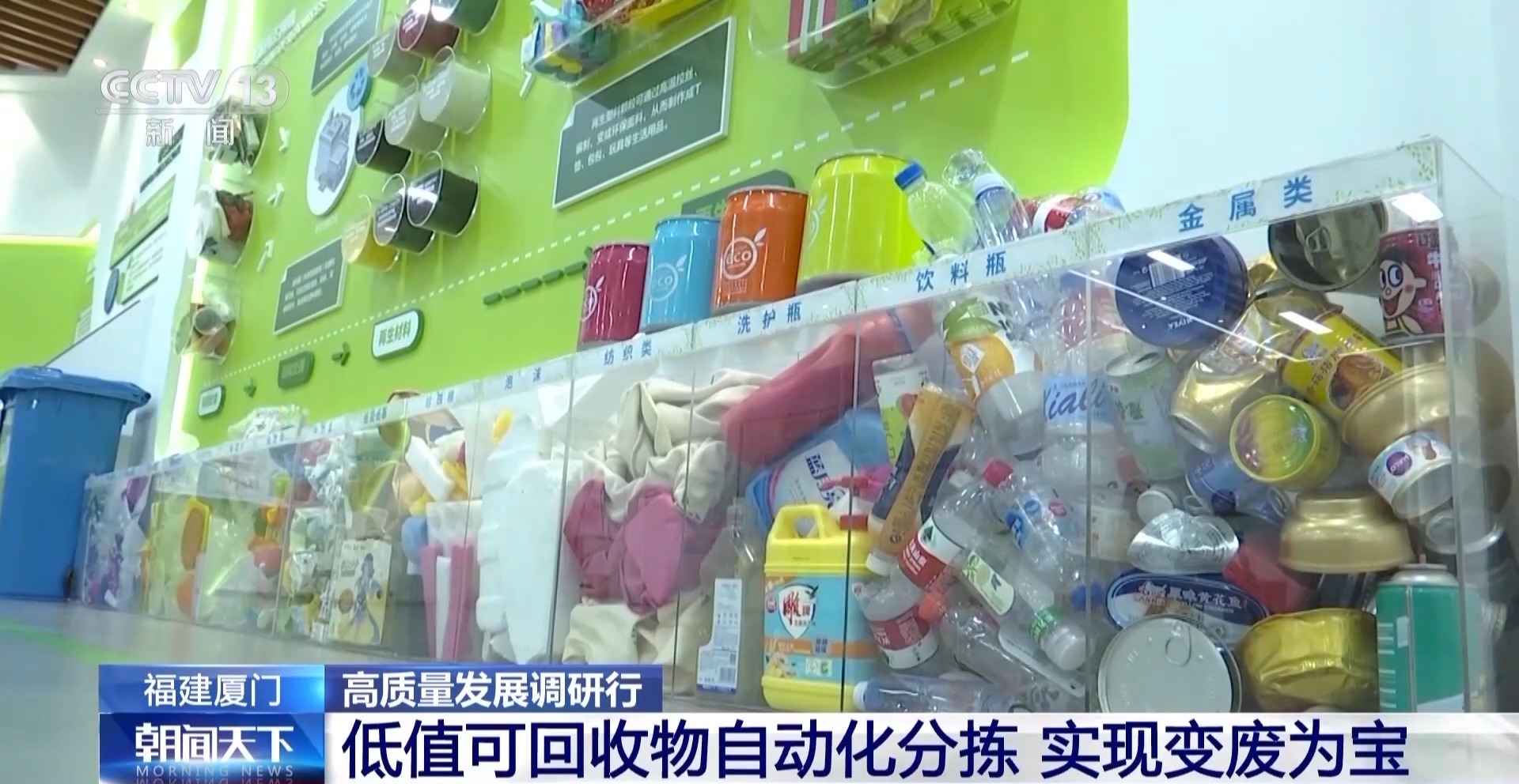 总台央视记者 高磊:如今一次性餐盒和奶茶杯可以说比比皆是,其实这些都是可回收物,1.35个餐盒经过加工、循环利用就可以变成1个无纺布袋,奶茶杯也可以变身为晾衣架。如今在厦门,类似这样的15种低值可回收物不仅被分拣了出来,还做成了各种再生制品,出口海外。