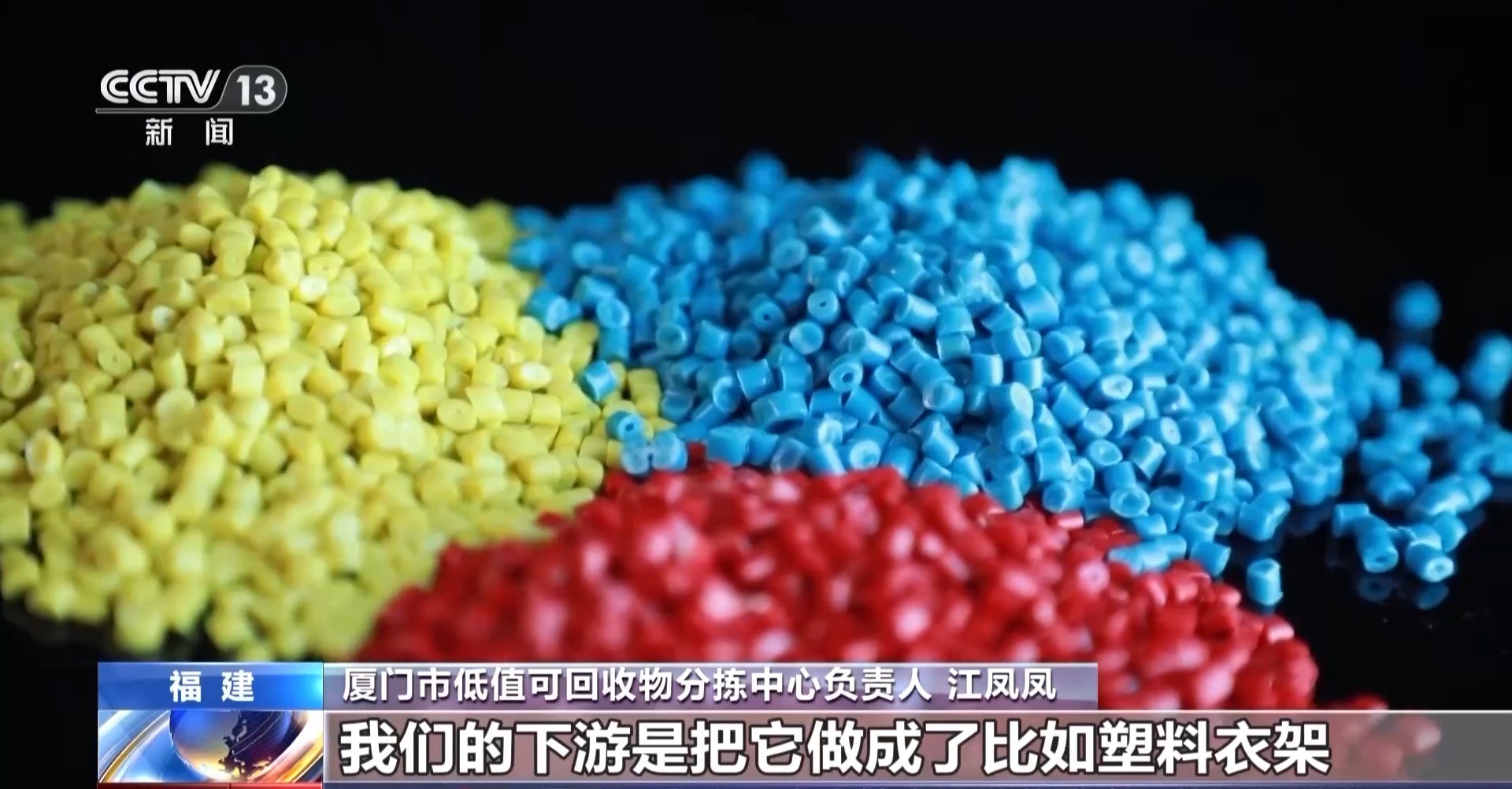 厦门市低值可回收物分拣中心负责人 江凤凤:比如一次性的餐盒,我们现在是把它做成了再生粒子,我们的下游是把它做成了比如塑料衣架,出口到德国、日本等国家。国外对于这些产品都有非常明确的要求,材料里面必须含有30%的再生料,并且再生料还要可溯源。