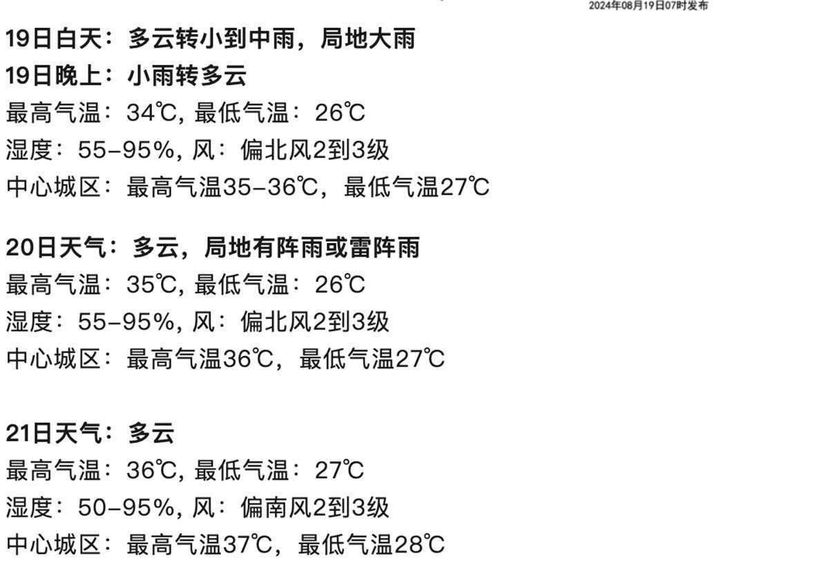 预计19日至20日,武汉市多分散性阵雨或雷阵雨,局地有短时强降水、雷暴大风等强对流天气,高温天气有所缓和。