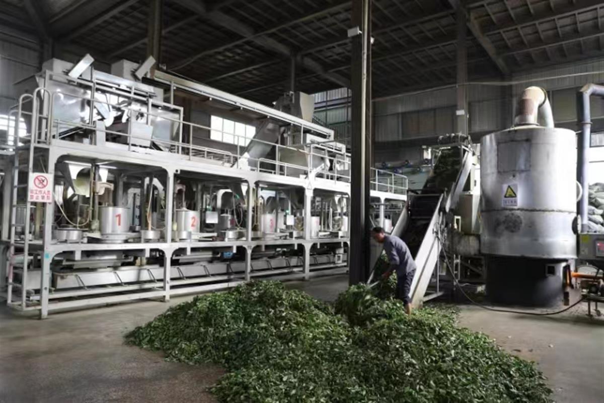 在鸿渐茶业加工厂内,一筐筐新鲜的茶叶被运送到工厂流水线上,晾晒、揉捻、发酵、烘干,等待着包装完毕发往客户手中。作为湖北省农业产业化龙头企业,夏茶上市以来,鸿渐茶业每天平均收购鲜茶叶达到4万斤左右。