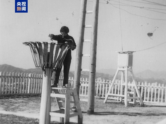 △20世纪50年代,福建省气象台观测员在福州国家基准气候站进行降水量观测。