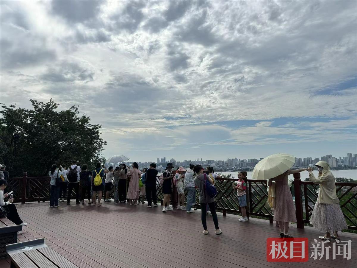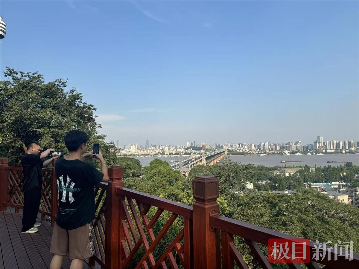 此前,大家可在蝴蝶泉二楼观览大江大桥风景,但那个位置空间有限,拍照需要依次等候,如今站在这个大阳台上,想拍就拍。