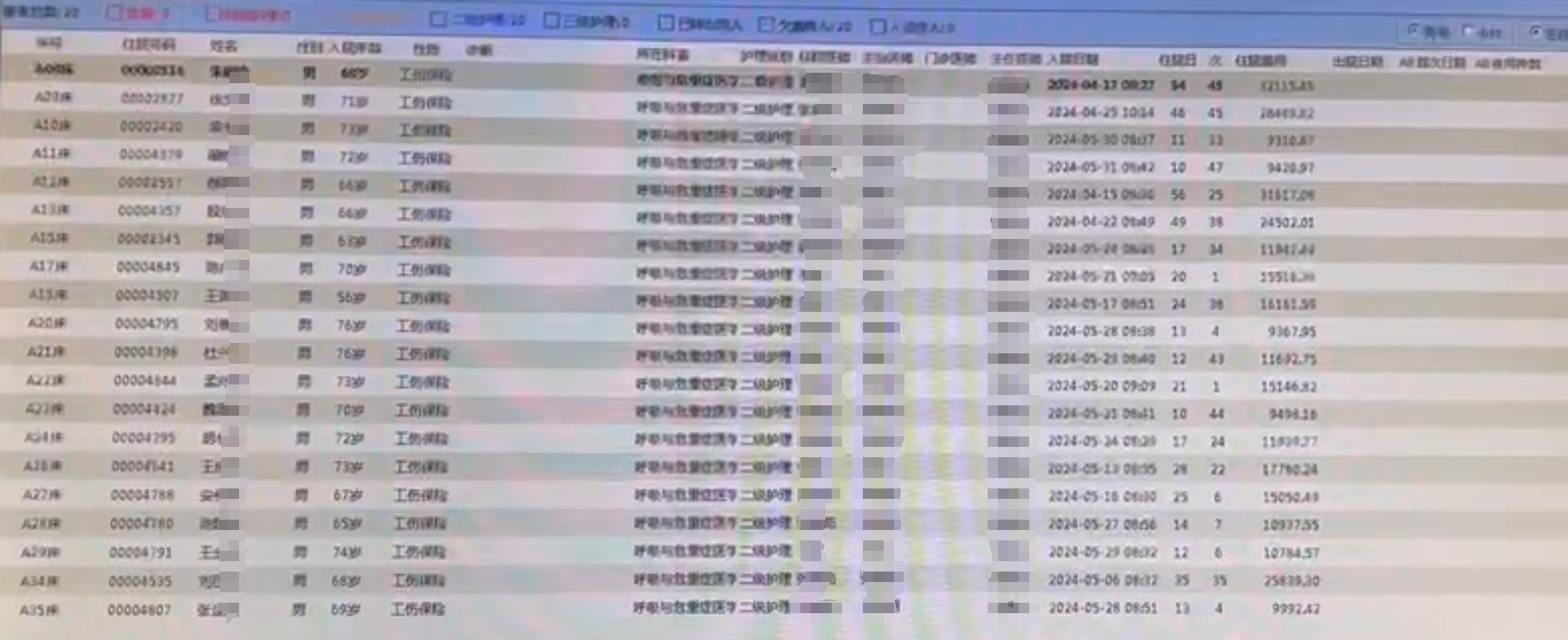 系统内部显示满床,多位病人已经住院几十次