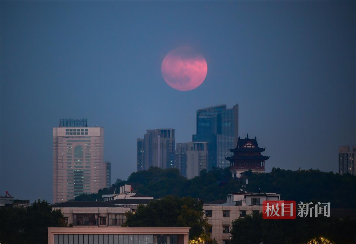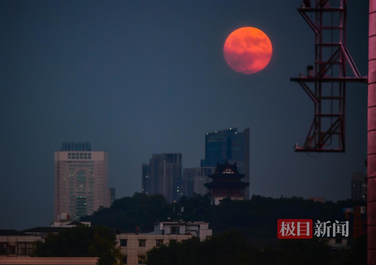 8月19日晚,一场视觉盛宴悄然降临武汉,让许多市民与天文爱好者为之倾倒。傍晚19时5分左右,一轮超级红月亮缓缓从地平线升起,其景象之壮观,恍若直接从古老神话中跃然而出,为这座城市增添了一抹神秘而浪漫的色彩。