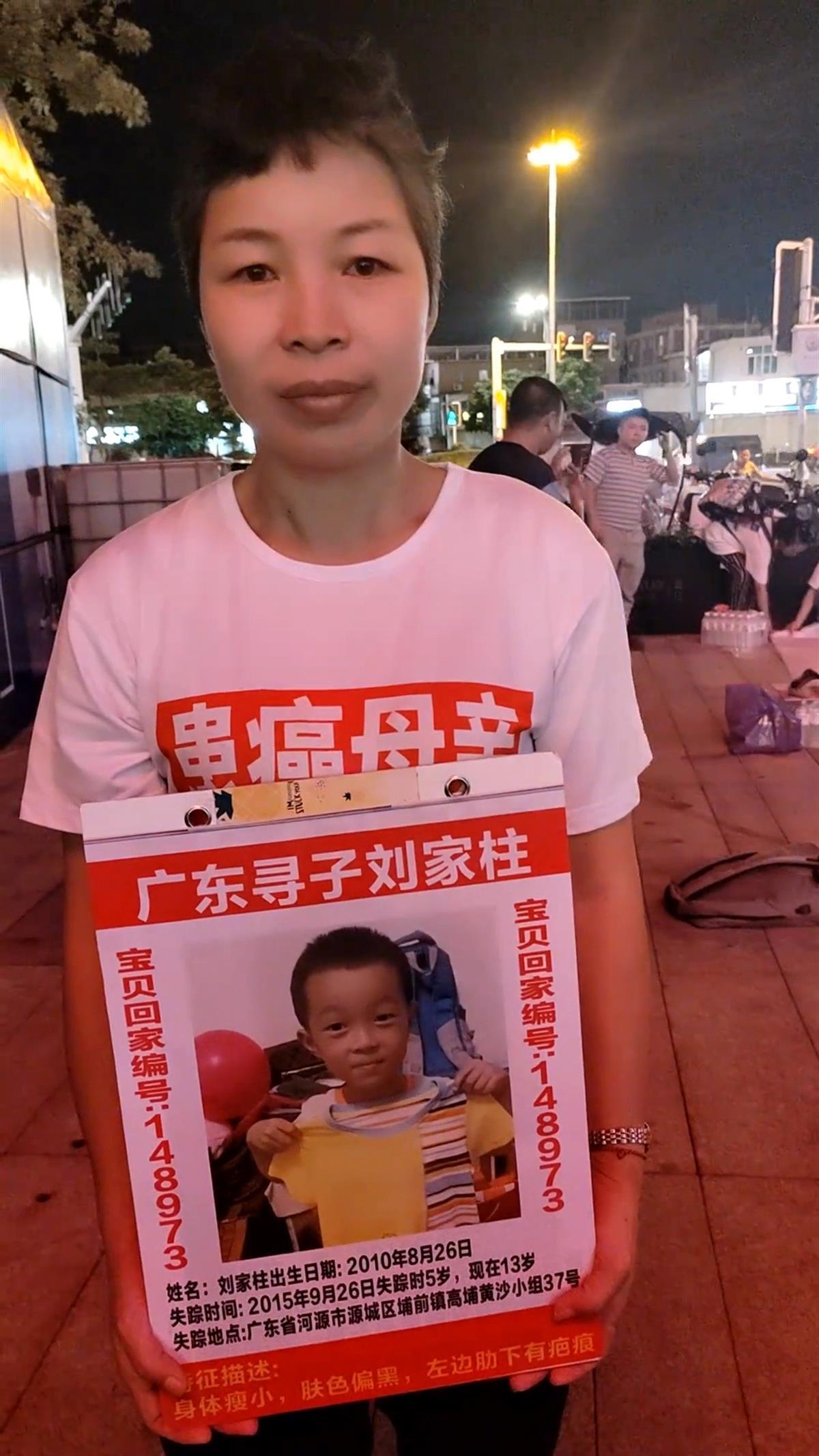 利雪梅是广东河源人,育有一儿一女。2015年9月26日,中秋节的前一天,利雪梅的儿子刘家柱和邻居三个小孩子在房子后面的荒地里玩耍,孩子们玩着玩着口渴了,两名年纪比较大的小孩提出,回家拿水给弟弟们喝,但等他俩带着水回去时,刘家柱和另一名姓罗的小男孩已经不在原地了。