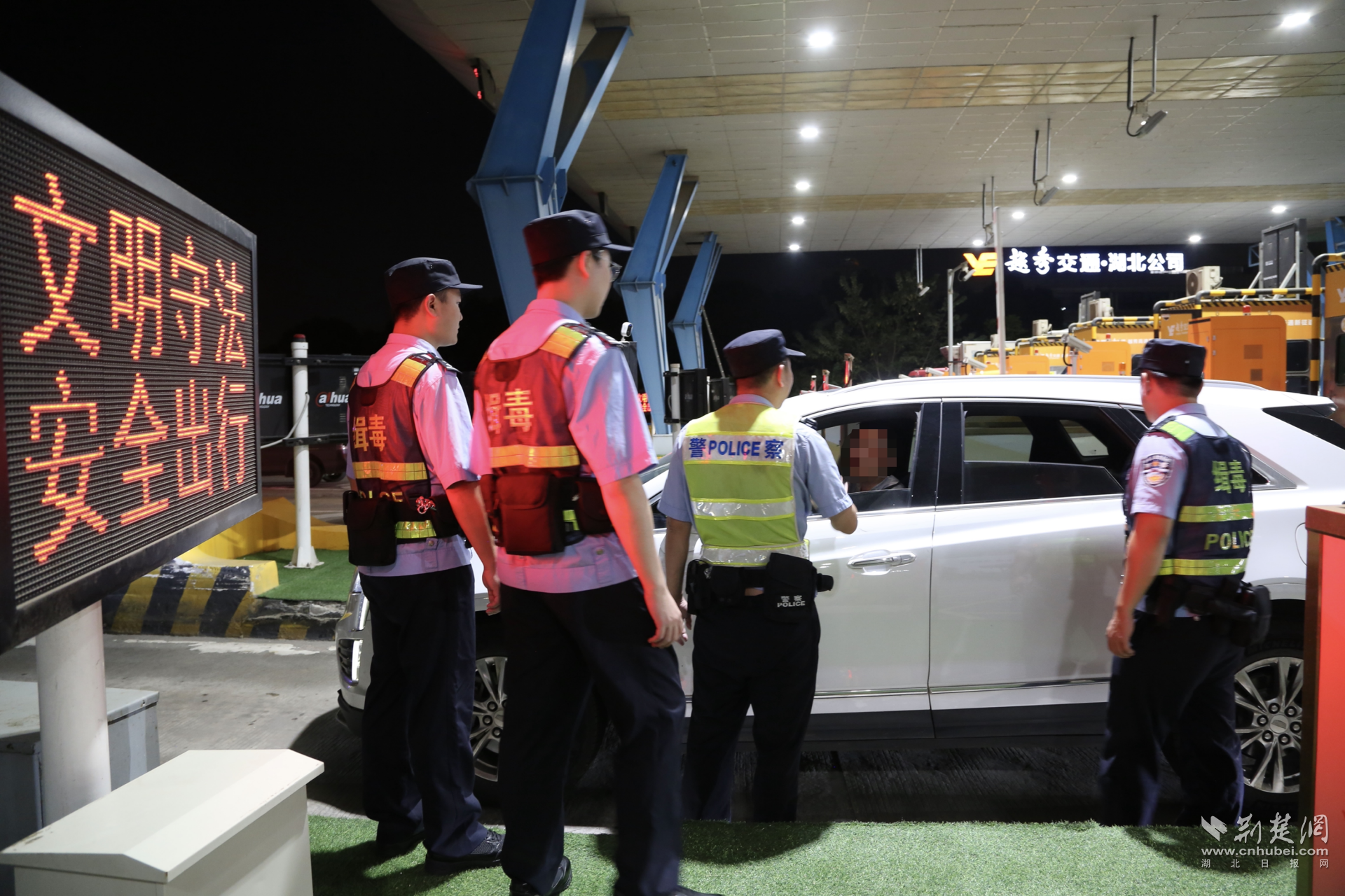 民警在高速琴台收费站设卡盘查。通讯员供图