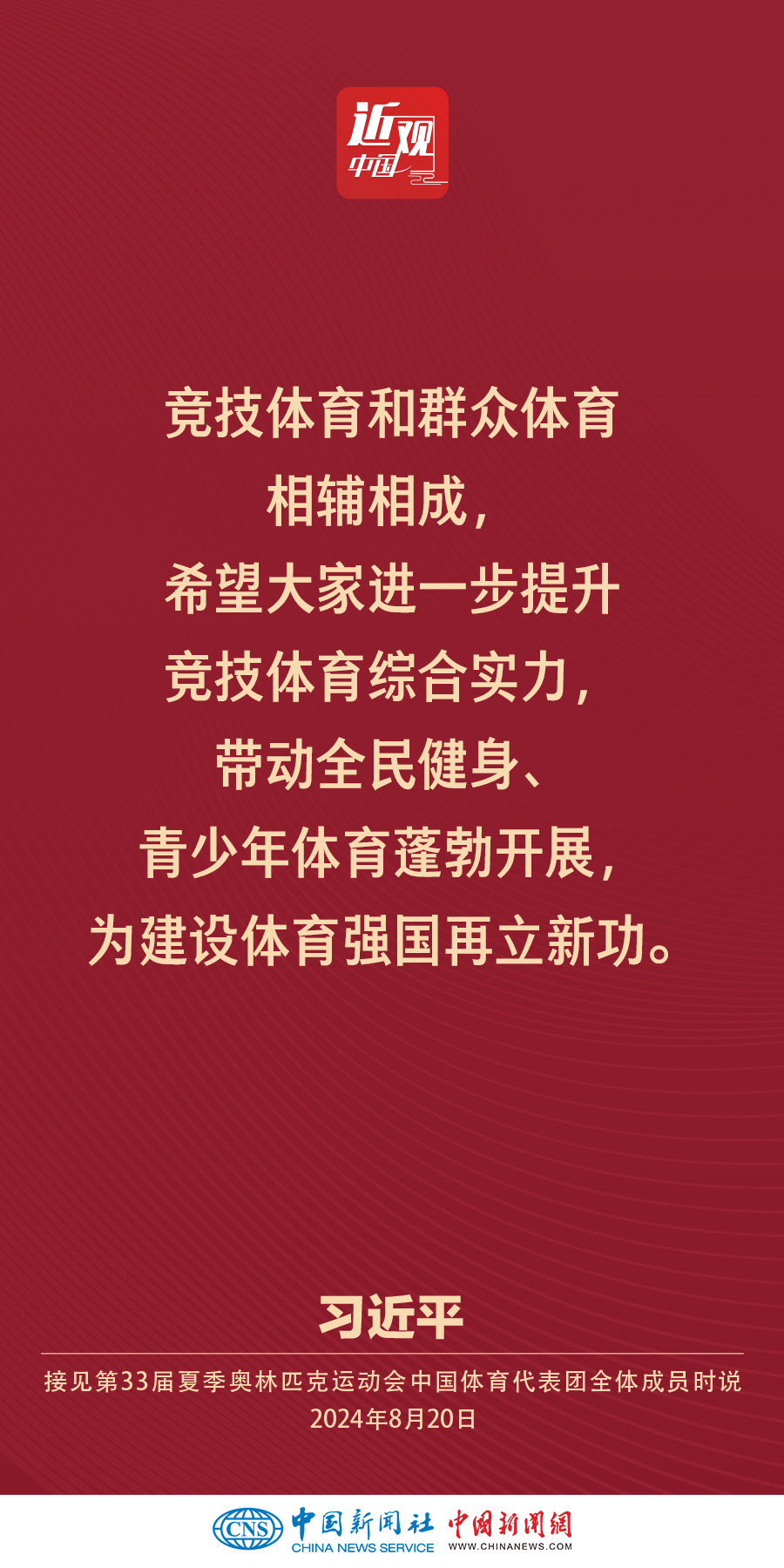 中共中央总书记、国家主席、中央军委主席习近平20日下午在人民大会堂接见第33届夏季奥林匹克运动会中国体育代表团全体成员。他强调——