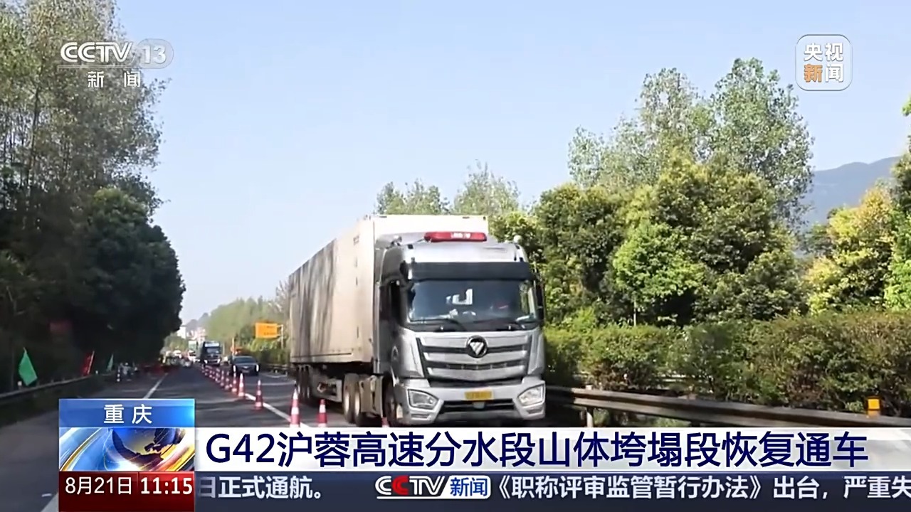 昨天(20日),经过一个多月的抢险施工,G42沪蓉高速分水段山体垮塌处解除断道交通管制,开放重庆主城至万州方向单道通行。