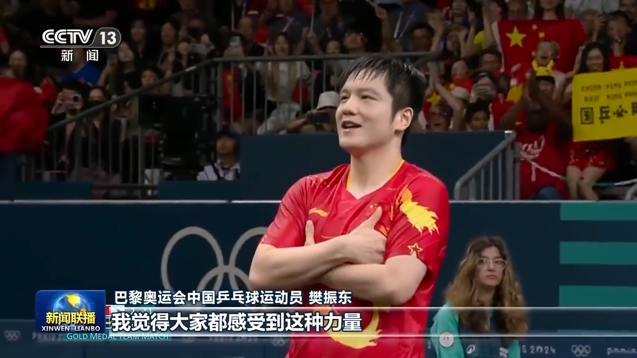 巴黎奥运会中国乒乓球运动员 樊振东:能够受到总书记的接见,我觉得是非常至高无上的荣幸。里约奥运会跟东京奥运会结束以后,也都有幸参与总书记的接见,总书记每一次都非常亲切。我觉得无时无刻都能够感受到总书记对体育、对我们中国代表团的这种重视跟关心,我觉得大家都感受到这种力量。