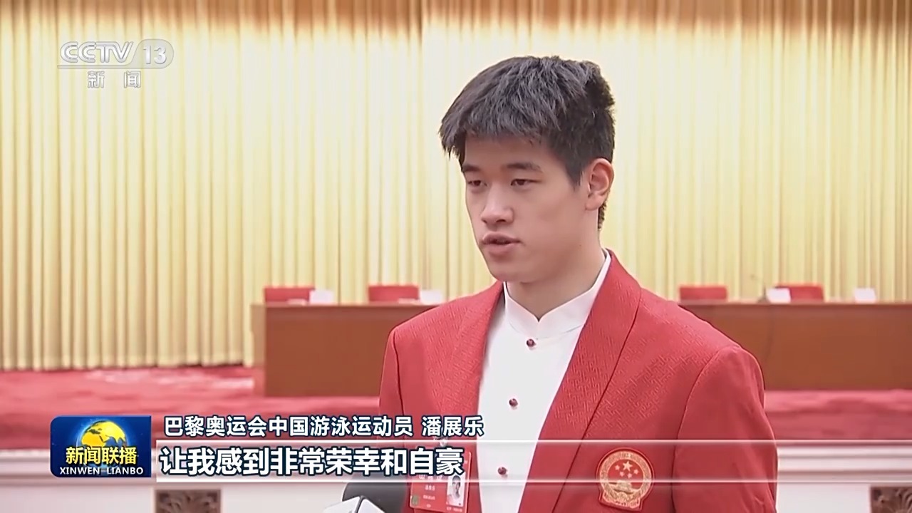 巴黎奥运会中国游泳运动员 潘展乐:参加这次大会,接受总书记的接见,让我感到非常荣幸和自豪。有这么强大的祖国作为我们坚实的后盾,能够让我们在赛场上放心,就是全身心地投入,全神贯注去比赛。我们年轻一代运动员需要有为国争光、挑战人类极限那种的精神和思想,去奋斗,去拼搏,向世界展示中国力量。