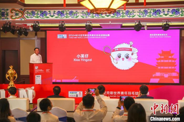 8月22日,2024年尤尼克斯世界青年羽毛球锦标赛混合团体赛抽签仪式在江西南昌举行,根据现场抽签结果,中国国家队与韩国队、澳大利亚队、中国香港队,加纳队同分在A组。本次赛事将于9月30日至10月13日在南昌举行,来自40个国家和地区的代表队参赛。图为抽签仪式现场公布本届赛事的吉祥物小英仔,该吉祥物以蒲公英为原型,结合世青赛特点和南昌元素,应用现代卡通表现形式设计而成。中新社记者 刘力鑫 摄