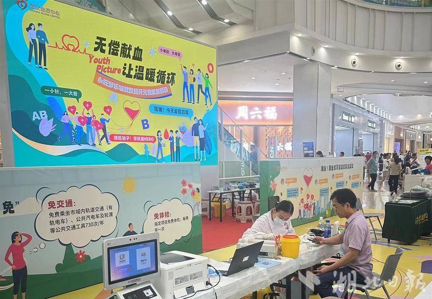 湖北日报讯(记者曾莉、通讯员肖莉娇、付晨)“逛商场也能献血了!”近日,在永旺梦乐城武汉经开店,一个由卡通画展架搭建的特殊“店铺”引人注目,这是武汉首个设在大型综合商业体内的临时献血点。据悉,这是武汉血液中心联合永旺梦乐城经开(武汉)商业管理有限公司、武汉经开区卫健局在暑期推出的一项公益服务举措,服务时间为本月19日至23日的12:00-20:30。该献血点位于永旺梦乐城武汉经开店南广场,处于整个商业体内最中心地带,毗邻商场的主要出口7号门,距离地铁6号线D站江城大道出入口步行仅5分钟。整个献血点由无偿献血卡通宣传画展架搭建而成,搭配着LED大屏播放的献血宣传海报,十分吸睛。尽管献血点是临时设置,但它功能设施完善,登记区、体检化验区、采血区、休息区一应俱全,可供2位献血者同时献血。