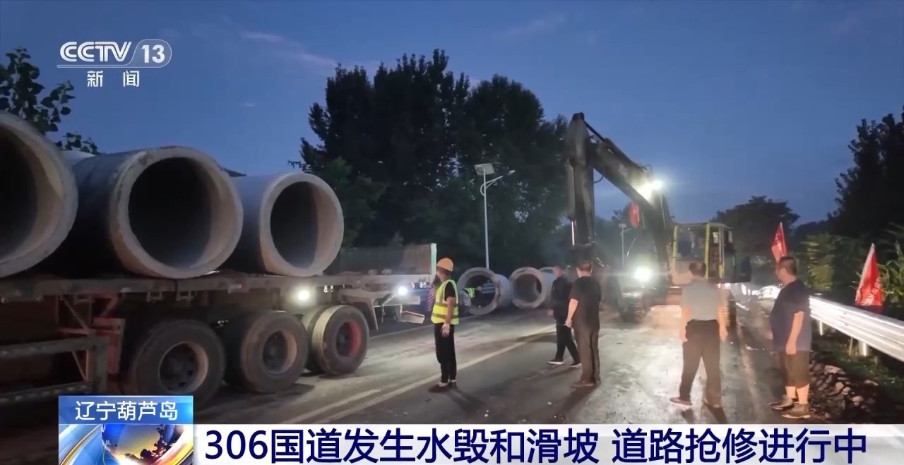 总台记者 韦昊岩:这里是306国道的一处维修现场,现场工人正在进行连夜抢修。在前方,有一处出现了水毁,底下的管涵已经被冲走。没有了管涵,雨水和河水会持续对地基进行冲刷,所以现场的工人要在下面埋设若干个管涵,让雨水和河水顺着管涵排出。