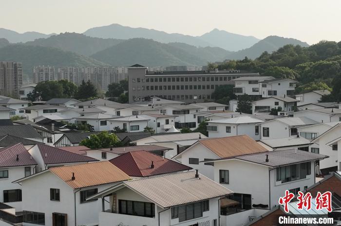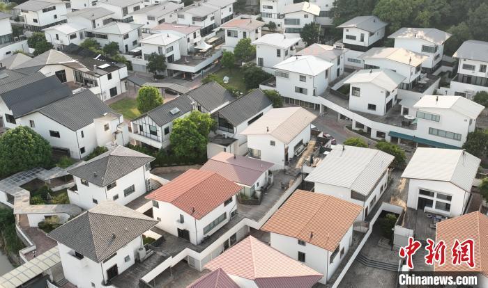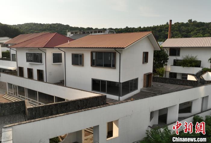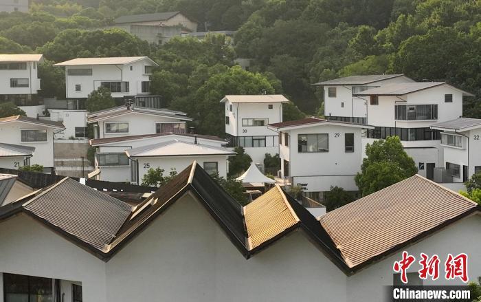 8月23日,航拍象山艺术公社颇具设计感的建筑。近日,国产3A游戏《黑神话:悟空》亮相后在全球受游戏爱好者追捧,在该游戏诞生地——浙江杭州西湖区艺创小镇象山艺术公社,一幢幢富有设计感的独栋小楼密集排列,让小镇成为当地的“网红打卡点”。(无人机照片)中新社记者 王刚 摄