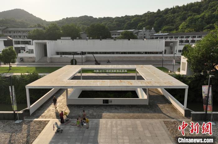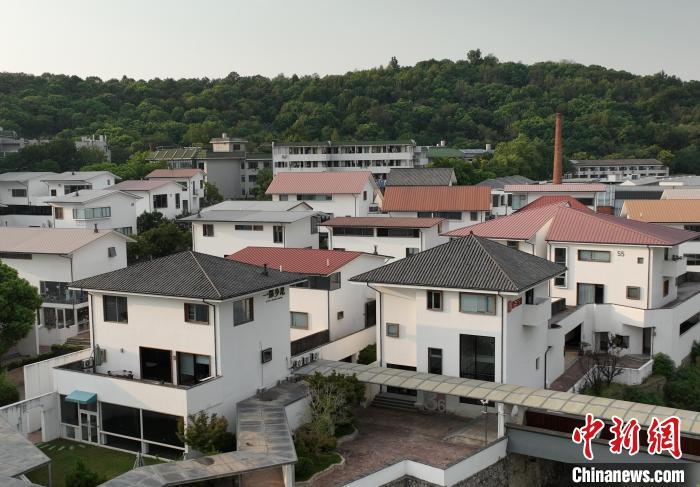 8月23日,象山艺术公社的建筑颇具时尚感。近日,国产3A游戏《黑神话:悟空》亮相后在全球受游戏爱好者追捧,在该游戏诞生地——浙江杭州西湖区艺创小镇象山艺术公社,一幢幢富有设计感的独栋小楼密集排列,让小镇成为当地的“网红打卡点”。(无人机照片)中新社记者 王刚 摄
