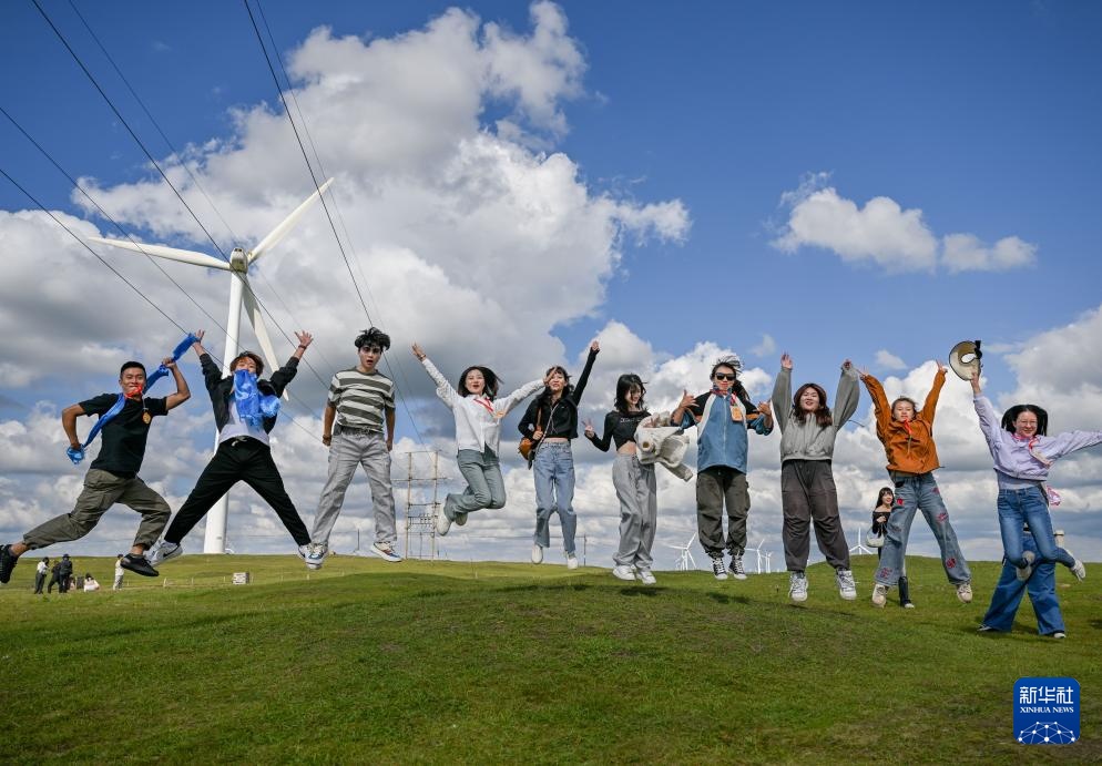 草原一望无际,让初来乍到的台湾世新大学学生林长岳印象深刻。“台湾是海岛,以山地为主,没有这样大片的草原。来到这里,我被深深震撼,感到很释放。”他说,“总要来一次草原,我会把这里的美好分享给台湾的朋友。”