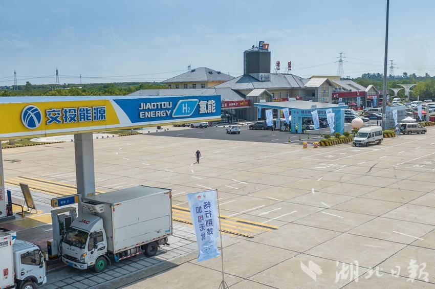 8月23日,位于福银高速孝感服务区的加氢站,不远处是600KW超级充电站。