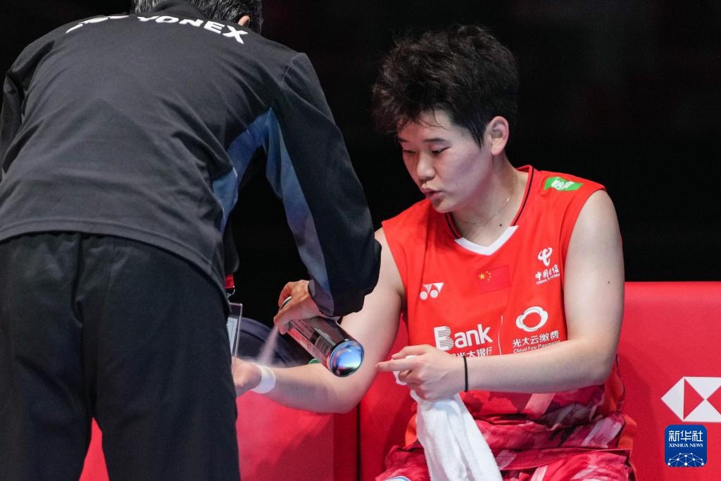 8月25日,谭宁(右)在比赛中接受治疗。