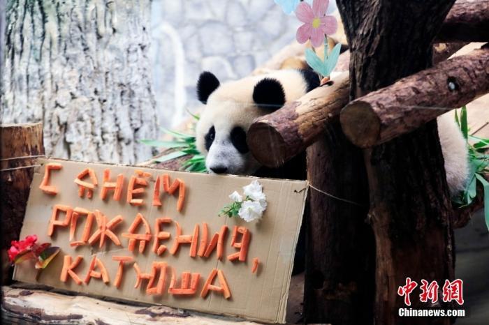 中新网8月25日(张乃月)竹子蛋糕、胡萝卜“贺卡”、舞龙表演……当地时间8月24日,莫斯科动物园熊猫馆热闹非凡。不少游客专程赶往莫斯科,为首只在俄罗斯出生的大熊猫“喀秋莎”庆祝一周岁生日。