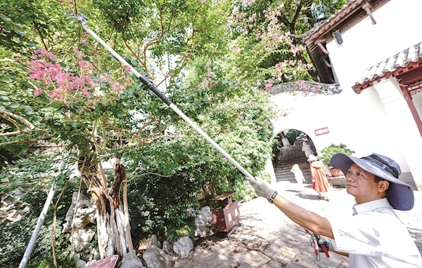 尽管如此,在该园紫薇养护专班的精心养护下,这株紫薇古树仍年年开花。眼下正值花期,紫薇枝头缀满水红色的花朵。