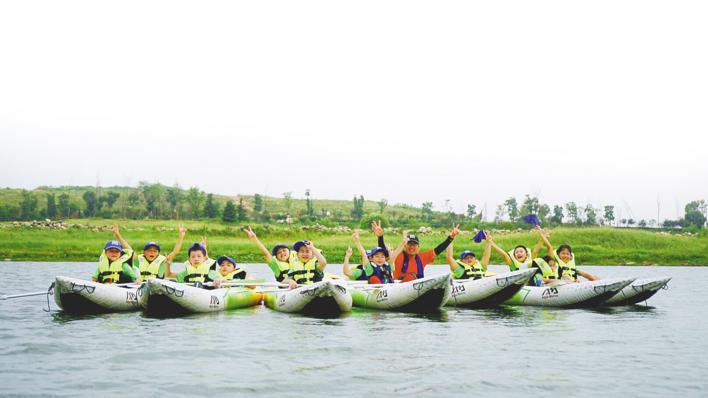 小朋友们在天屿湖旅游区体验皮划艇项目。(湖北日报通讯员 严春和 摄)