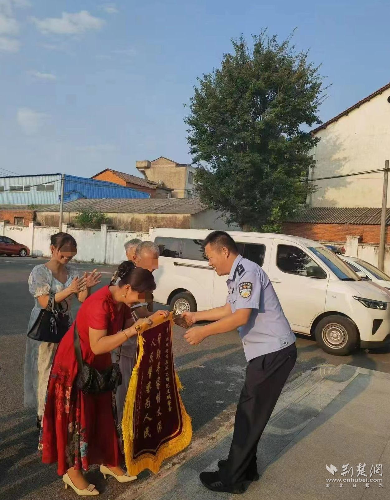 陈某生、饶某珍夫妇为范立鹏所长及全体民警送上锦旗。通讯员供图