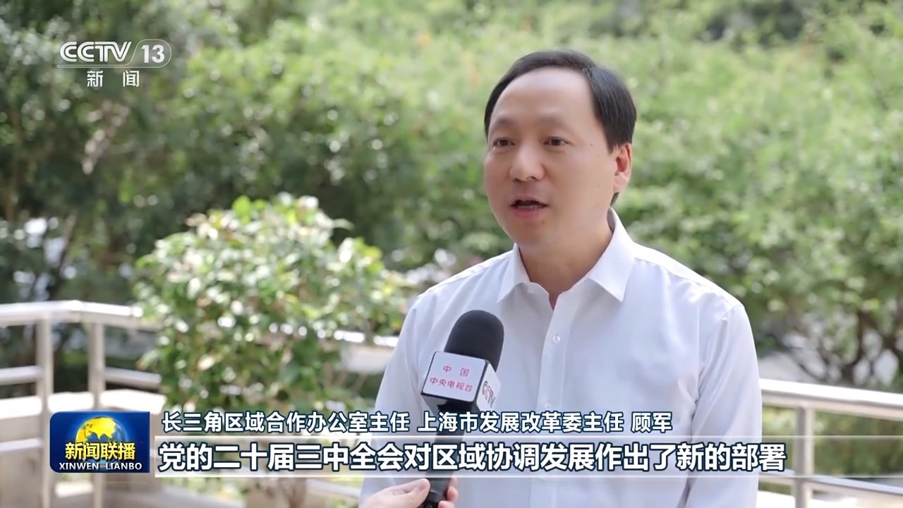 长三角区域合作办公室主任 上海市发展改革委主任 顾军:党的二十届三中全会对区域协调发展作出了新的部署,我们按照习近平总书记重要指示精神,编制第三轮三年行动计划,加强重大改革创新举措系统集成,进一步提升创新能力,产业竞争力和发展能级,确保长三角一体化发展国家战略各项任务加快落实,更好支撑和服务中国式现代化。