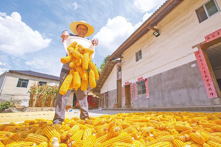 8月26日,秭归县磨坪乡一篮村村民在晾晒农产品。当地农民抢抓晴好天气加紧采收、晾晒、销售玉米和瓜果等农作物,吸引不少游客前来观赏采摘,多彩的收获图景成为当地旅游特色。 (视界网 王罡 高正伟 摄)