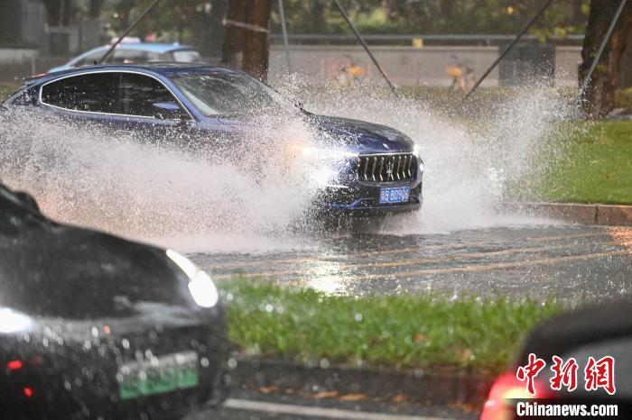 图为车辆穿行在深南西路积水路段。中新社记者 陈文 摄