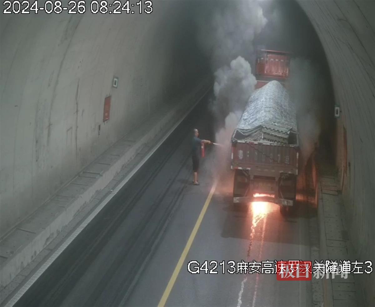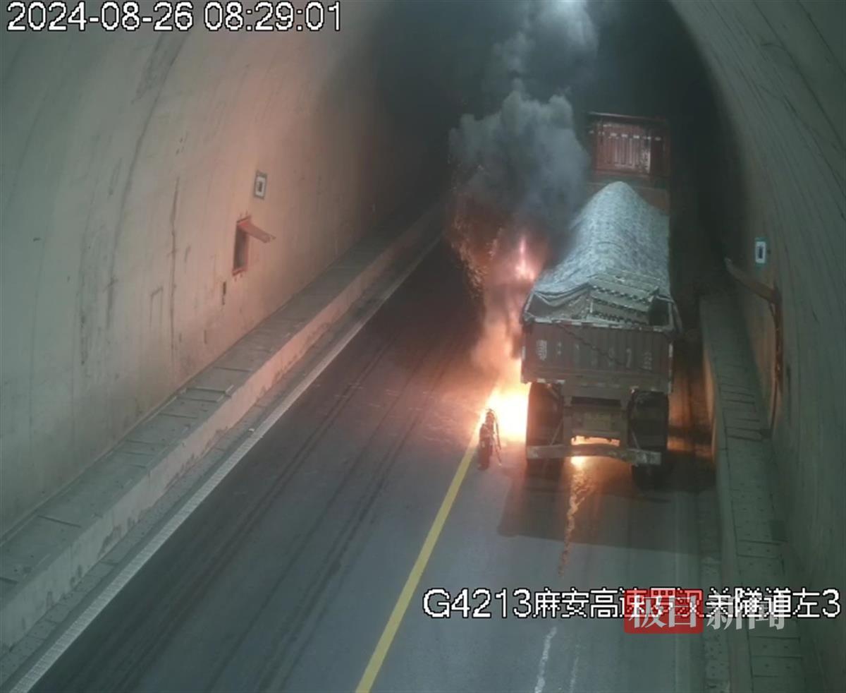 2024年8月26日上午8时20分,湖北交投襄阳运营公司保康隧道监控点内传来阵阵警报声,“不好,是火灾警报响了!”保康隧道监控员姜明娟立即反应,迅速查看隧道火灾感知系统和视频监控,发现麻安高速保宜段罗汉关隧道内一辆满载货物的半挂车正停在行车道上,车辆底盘处冒起熊熊火焰,隧道内浓烟四起,情况十分危急,而此时司机站在原地不知所措。