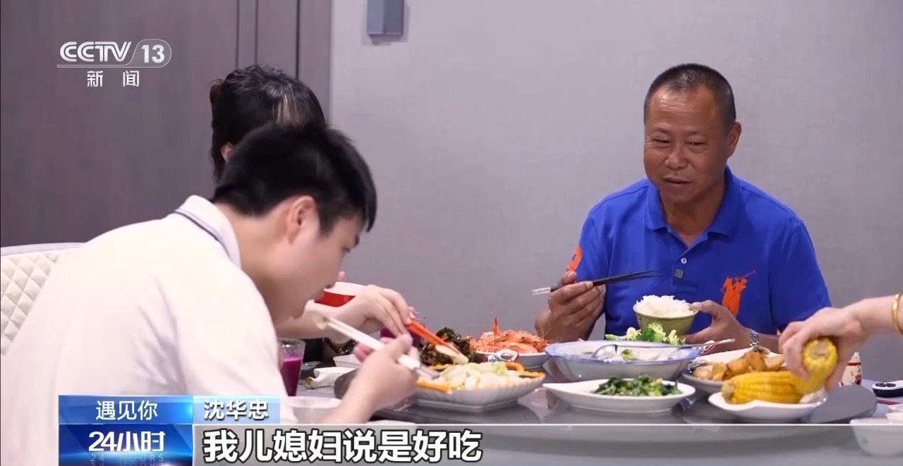 面对街坊和老熟人们的称赞,沈华忠显得有些拘谨,不好意思地摆手致谢。