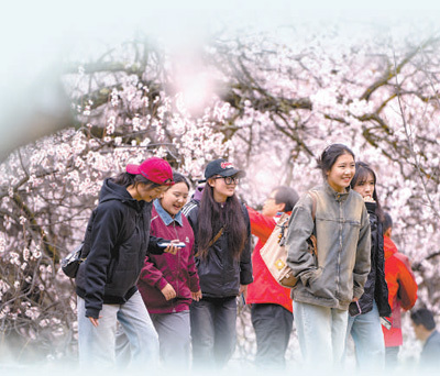 桃花盛开游客来