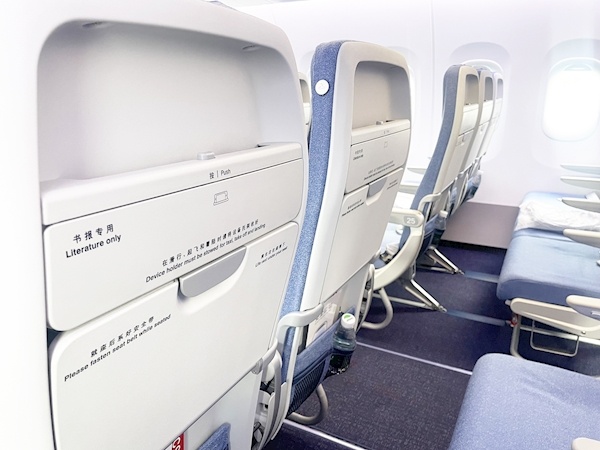 身高1.73米的汤女士坐在经济舱座位上,膝盖距离前面座位大约一拳半。她说,以前乘坐飞机时,有时候膝盖会顶到前排座椅,舒适度欠佳,国航C919的布局对个子高的旅客更加友好。