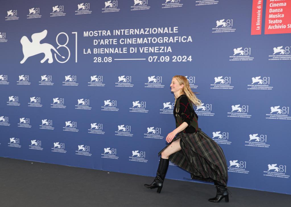 8月29日,在意大利威尼斯举行的第81届威尼斯国际电影节上,主竞赛单元影片《玛丽亚》演员阿尔巴·罗尔瓦赫尔亮相拍照式。新华社记者 李京 摄